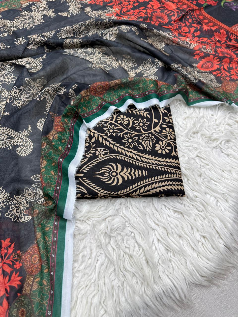 3Pc Supima Lawn Allover Suit - #37190